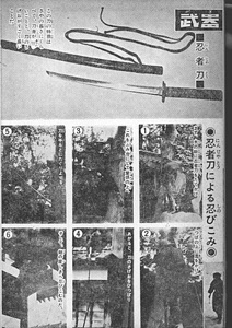 We can't find anything like this at this time in a Japanese source. We know that Hayes read Black Belt, and was featured in it a few years later. If he got the idea from this I somehow can't imagine him admitting it. As much as he took from other sources and passed off as if he learned it in Japan, it is not unreasonable to think that he wrote in his early works that the ninja used straight swords from an American magazine. But as we have seen, he is fearful of having his status as an infallible master threatened.